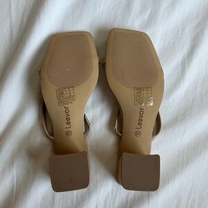 Square toe, block heeled sandal. Would be perfect for a spring wedding or event! Super comfy with a 2.25 inch block heel. Never worn!