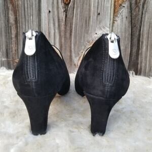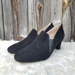 Square Toe Pumps Adrienne Vittadini Lave Size 8.5 Black Suede Leather Pilgrim