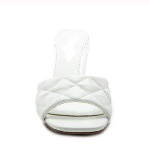 Square Toe Quilted Mules in White