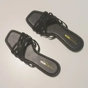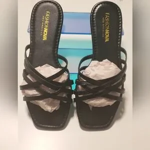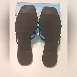 Square Toe Slides/ sandals U.S size 8. Brand new never worn in plastic and box. Box has some damage. In excellent new condition. All black summer sandals. from smoke free home.