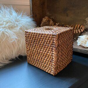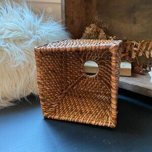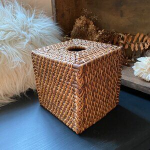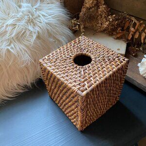 Square Vintage Rattan Tissue Box Cover - Boho Shabby Chic Home Decor