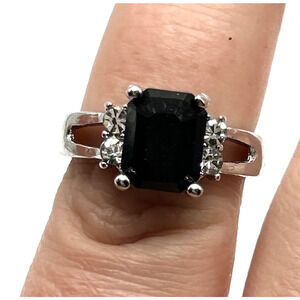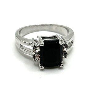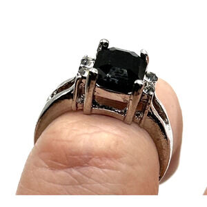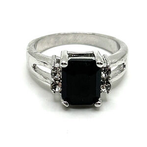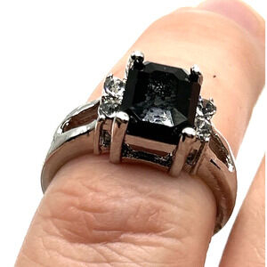 Square Womens 10 Blue Sapphire Cubic Zirconia Silver Plated Fashion Ring NWOT