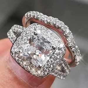 🎁Square Zircon Micro Pave 925 Sterling Silver Plated Wedding Ring Set,UNVN12176