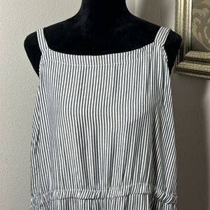 Square neck blue white stripe elastic waist crop wide leg jumpsuit Sz XXL