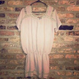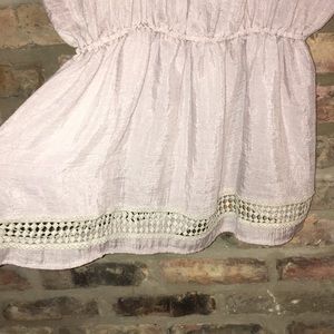 Super cute pale pink cinched waist eyelet dress. Eyelet detail around neck and sleeves and at waist where you can flounce over for mini dress effect. Very easy throw on. This was a gift I never wore and has been sitting in my closet. Great cotton dress!!