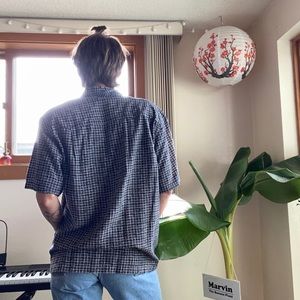 Square print button down