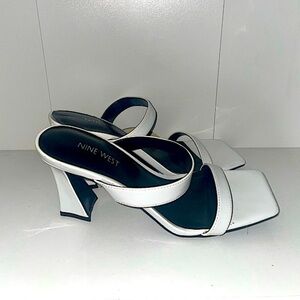 Square toe modern White heels slip on heels double strap heels chunky heel block