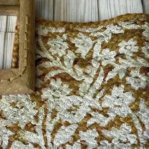 Square wooden handle 100% jute natural tan woven tote bag