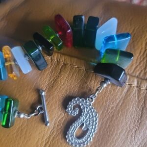 Square glass block necklace with decorative clasp