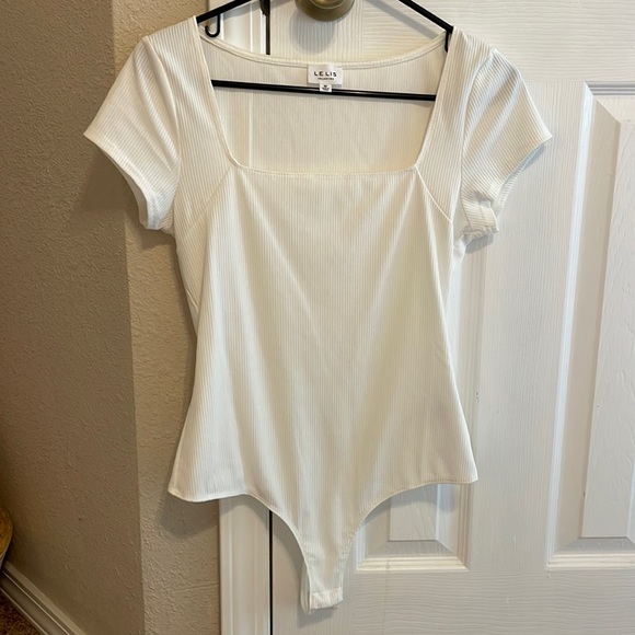 NWOT white square neck ribbed bodysuit size medium purchased from pink blush boutique