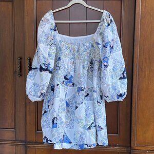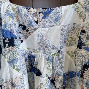 Squareneck cotton voile dress in patchwork floral - J Crew - XL - POCKETS