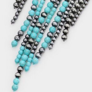 Squash Blossom Natural Stone Accented Layered Fringe Bib Necklace Set