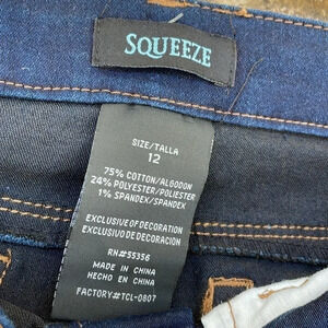 Size 12 Waist side to side is 13.5” Rise is 7.5” Inseam is 27” Dark blue Stretchy NWT