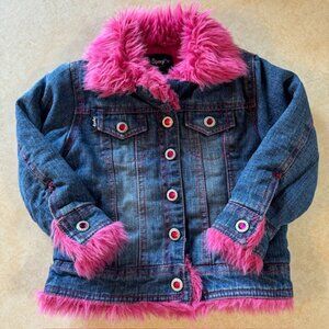 Squeeze New York jean jacket with bright pink faux fur and sparkly snaps