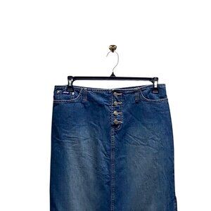 Squeeze Y2K Side Slit Denim Maxi Skirt Blue Size 11 Coastal Fall Retro Baddie