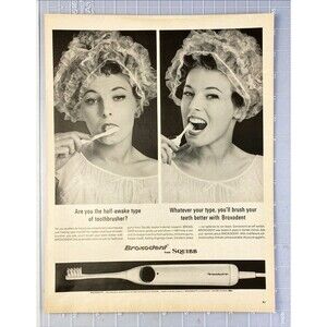 Squibb Broxodent Automatic toothbrush "Brush your teeth Better" Vintage Print Ad 1963 LIFE Magazine September 20, 1963, About 10 x 14 Inches. Carefully shipped.