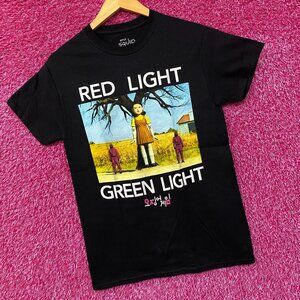 Squid Game Red Light Green Light Netflix Show T-Shirt Small. Generally measures 17 inches pit to pit and 27 inches Long. Amazing graphic design shirt, perfect for Squid Game fans. New never worn overstock in great condition.
