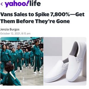 The hottest trending Squid Game Unisex Vans white slip ons. Get them before they are gone.