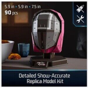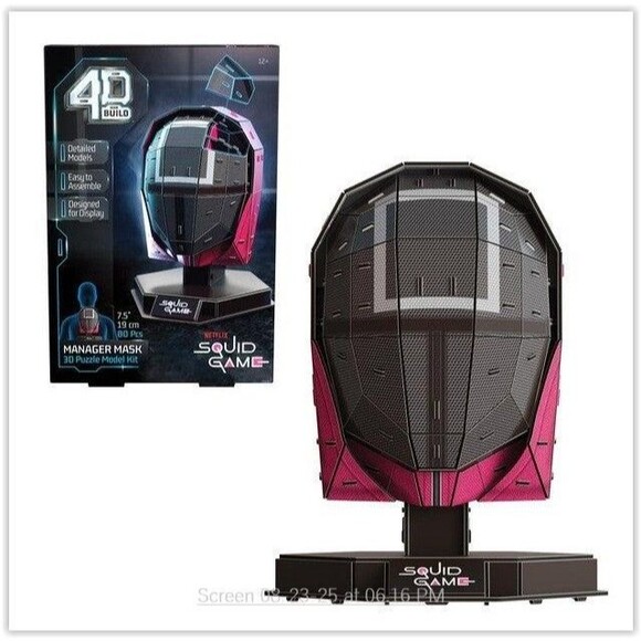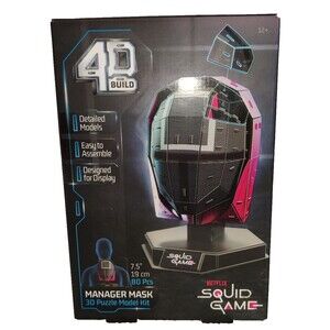 Children's games take an ominous turn in the hit Netflix show, Squid Game. While the stakes of this 3D Puzzle Squid Game Manager Mask aren't so extreme, try putting it together with the intensity of a show contestant. For the Squid Game fan, this mask is beckoning to be displayed on your shelf! This 4D Build model kit includes all the show-quality details youll love, plus a stand! You get 8 sheets with 80 punch-out pieces and easy-to-follow assembly instructions. No tools required! This Squid Game Mask measures 5.9 in x 5.9 in x 7.5 in (15 cm x 15 cm x 19 cm). Perfect for your home as desk décor or game room décor, display your model kit with pride. For new and seasoned fans of fantasy shows, action movies, horror movies, and strategy games, this model kit makes the perfect present for any teen superfan. Its the perfect adult toy as well. Whether you love action shows, fantasy books, Korean dramas, or K-dramas, this Squid Game puzzle is for you. Check out our other toy building sets for more toys for ages 14 and up. 4D Build also makes fantastic birthday gifts for men and gifts for him!