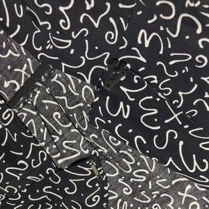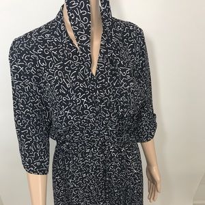 Vintage Norm Thompson Portland faux wrap dress. Closed from the waist down with hook and eye closures at the bodice. Stretchable elastic waist and removable belt tie for easy size adjustment. Two front chest pockets. No material tag. In excellent condition, looks unworn.