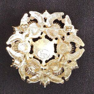 Squire Vintage Brooch with Golden Metal & Rhinestones