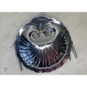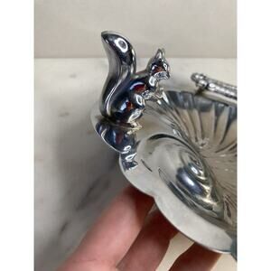 Squirrel Nutcracker Plate Set Vintage Chrome Plated Silver Shell Display Dish