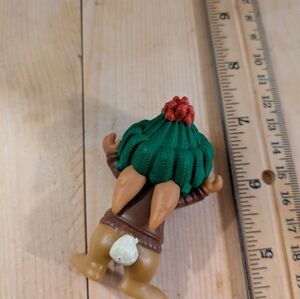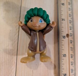 Adorable toy figure with a brown body and green hair. Perfect for collectors or kids.