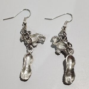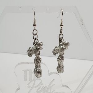Squirrel and nut silver pewter dangle earrings. Great condition, pierced hook earrings. Approximately 2" drop.