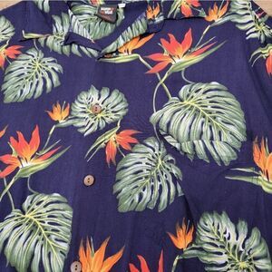 Squish Weat Hawaiian Floral Leaves Button Down Shirt Rayon Men's Size XXL