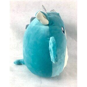 This 16-inch Squishmallows blue dragon plush offers a soft and huggable design featuring glittery wings and horns, making it an appealing addition for stuffed toy enthusiasts.