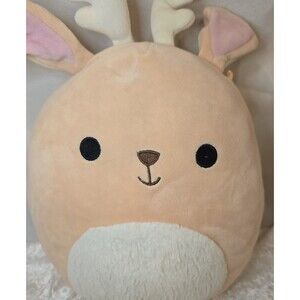 The Squishmallow 12" Andrew the Jackalope Exclusive Plush is a small beige stuffed animal from the Squishmallows brand. This adorable plush features the character Andrew, a jackalope, and is part of the Squishmallow collection. Known for its soft and squishy texture, this washable toy is a charming addition to any stuffed animal collection. With its exclusive design and size, this Squishmallow is sure to bring joy to both children and collectors alike.