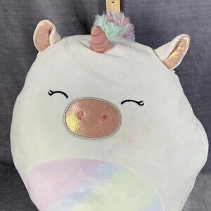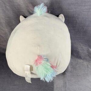 Preowned Squishmallow 12” Sofia the Unicorn plush. Features soft white fabric, shiny rose gold nose and ears, pastel rainbow belly, sparkly pink unicorn horn, and a fluffy multicolor mane. Clean and gently used with no major flaws. A perfect addition for Squishmallow collectors or as a cuddly companion.