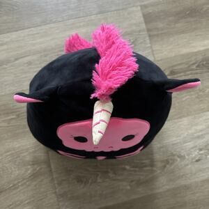 Add a spooky and cuddly touch to your collection with this 12-inch Squishmallow plush! Featuring a unique skeleton unicorn design in black and pink, this Squishmallow was released in 2020 for Halloween.