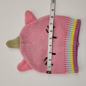 Pink unicorn knit beanie hat, perfect for winter and fall cool days. Machine washable.
