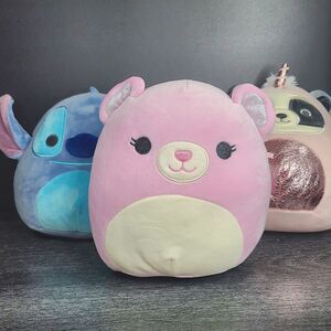 Squishmallow Plush Disney Stitch, Pink Bear, Rocky Racoon Dragon Plush Lot 8"