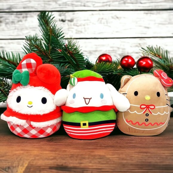 Squishmallow Plush Hello Kitty Friends 8" Christmas Cinnamoroll & My Melody Set