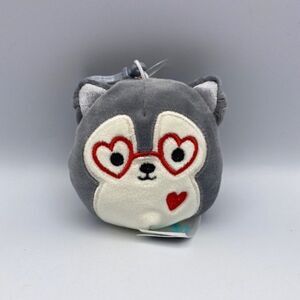 Squishmallow 3.5” Valentines Heart Eye Glasses Ryan Husky Clip On Keychain- NWT