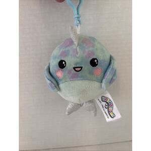 This Squishmallows 3.5" Clip-on, “Henrietta the Narwhal” plush toy is colorful and adorable. This mini plush toy is washable and easy to attach to a backpack or purse making it a versatile and fun gift for anyone. With its unique narwhal design and multicolor appearance, this Squishmallows toy is sure to bring a touch of whimsy & a smile to someone’s face.