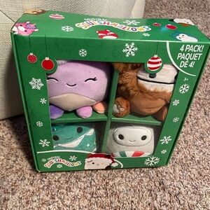 Charming Squishmallows set with four plush toys. Soft and cuddly. Perfect for kids' playtime.