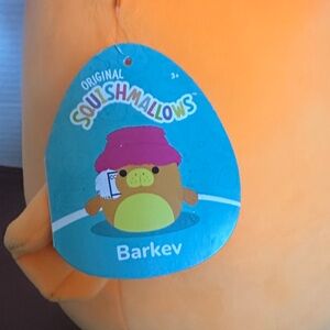 Barkev the Manatee is a neon orange and neon green Squishmallow-NWT