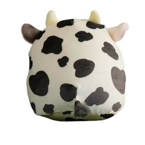 This Squishmallows stuffed animal features a charming black and white cow design with a soft, squishy texture. Its adorable cartoonish appearance, complete with small white horns and a pink snout, makes it a delightful addition to any toy collection. Perfect for cuddling, this plush toy is crafted with high-quality materials for endless comfort and enjoyment.