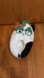 These slippers are brand new with the tags. It is Cam the cat with Christmas tree glasses. She is winking. She is a white cat with brown and black ears. Her whiskers and nose are embroidered.