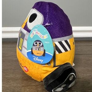 Keywords: Squishmallows, Wall-E, Disney, Plush, Stuffed Animal, Toy, Collectible, Kids, Purple, Yellow, Soft, Cuddle, Gift, Movie Character