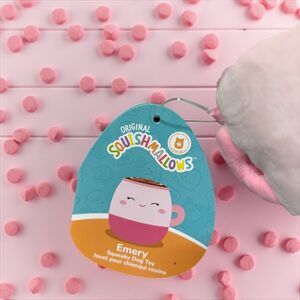 The Squishmallows Emery 3.5” Coffee Latte Dog/Cat Toy is a mini plush toy in a cute pink color. It features crinkles and squeaky sounds to keep your furry friend entertained. This adorable stuffed animal from the brand Squishmallows is perfect for dogs and cats to play and cuddle with, making it a fun and engaging addition to their toys collection.