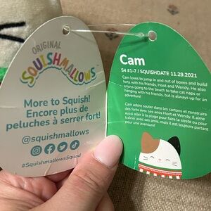 Charming Squishmallows cat Cam in a holiday sweater. Soft and cuddly.