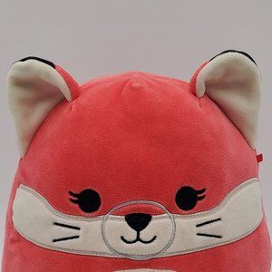 • Fifi is a red coral fox with large triangular ears. Her belly, the inside of her ears, & banded markings below her eyes & the sides of her face are all white. She has round black eyes with eyelashes, a triangular nose & two angled whiskers on each cheek.