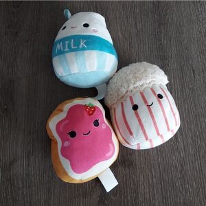 Squishmallows Food Squad Plush Lot - Milk, Popcorn and Jelly Toast