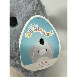 Introducing the Squishmallows Fuzzy Jason The Donkey 8 plush toy, exclusively available at Cracker Barrel. This cuddly stuffed animal is perfect for all occasions and features a gray color with a black mane. It is made by Kellytoy and is washable, making it easy to keep clean and fresh.