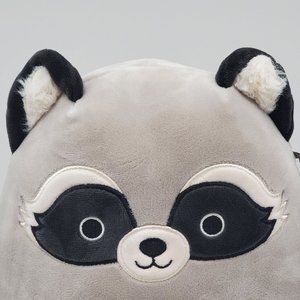 • Galci is a light grey raccoon with black winged markings around his eyes. Each marking has a white band above it. He also has a white muzzle with a black nose & mouth, as well as round black eyes ringed in white. He has black ears with white fluffy insides matching his fluffy white belly.