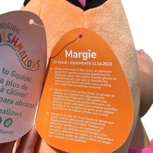 The Squishmallows Halloween Margie Pumpkin Devil 8” Plush is a brand new addition for the 2023 Halloween season. This cute and cuddly plush toy features a pumpkin devil design in vibrant orange color, perfect for celebrating the occasion. With a size of 8 inches, this small plush is great for children and collectors alike. The Squishmallows brand ensures high quality and adorable details for a fun and festive addition to anyone's Halloween festivities.